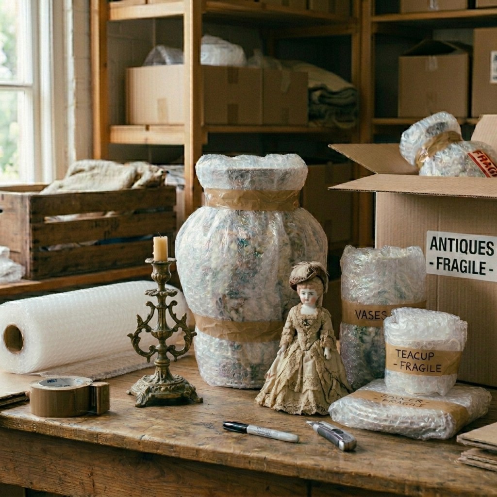 - Porcelain & Glass: Minimum three inches of bubble wrap, double-boxed.